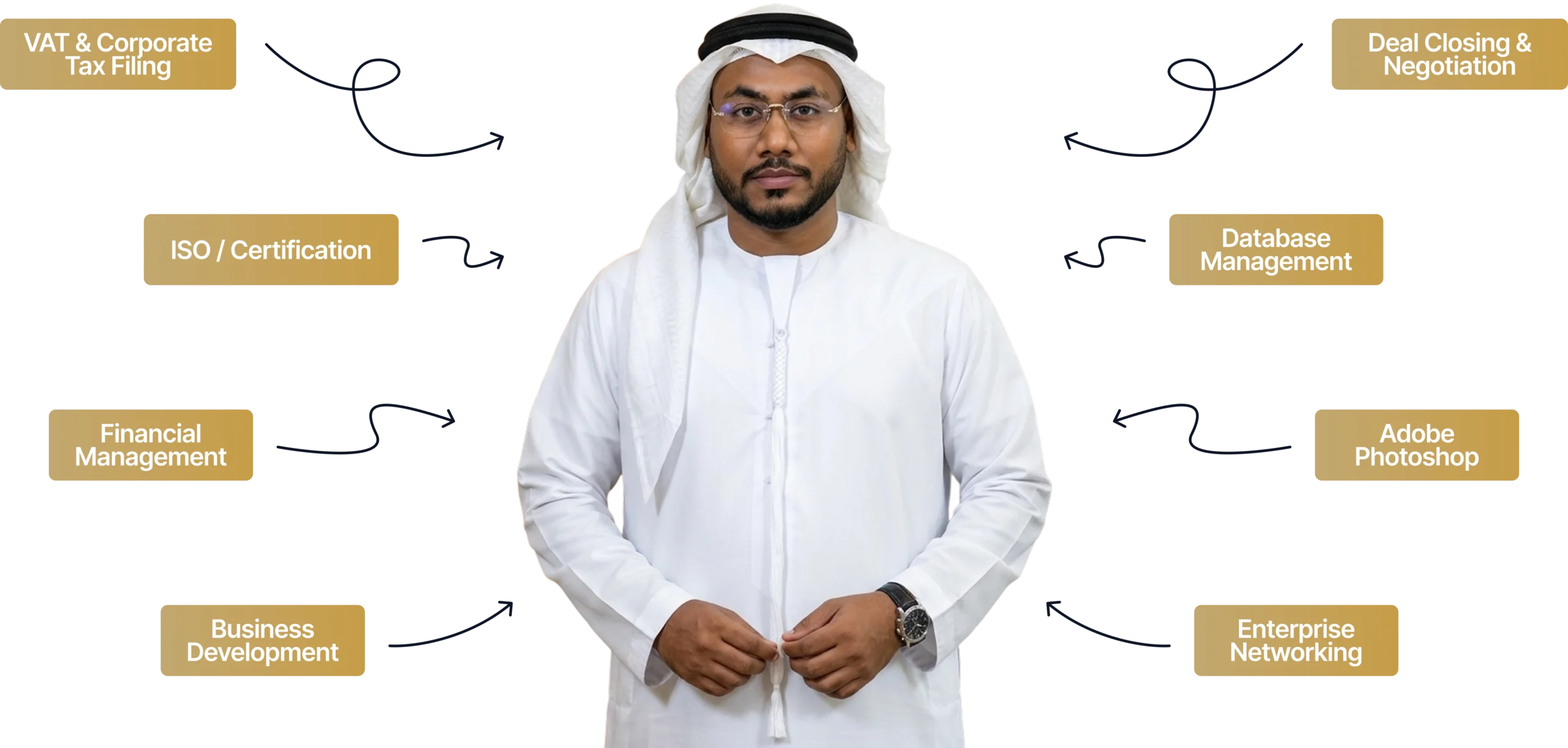 Seasoned financial and business development professional with over 10 years of experience in UAE corporate finance, VAT & Corporate Tax compliance, executive leadership, and multi-industry consulting. Proven track record managing financial operations across 15+ companies spanning oilfield, real estate, transport, trading, and contracting sectors. Known for restructuring organisations, achieving top ICV scores, and driving measurable growth.